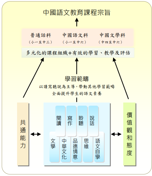 培養學生閱讀、寫作、聆聽、說話和思維等語文表達能力,並培養自學能力。
