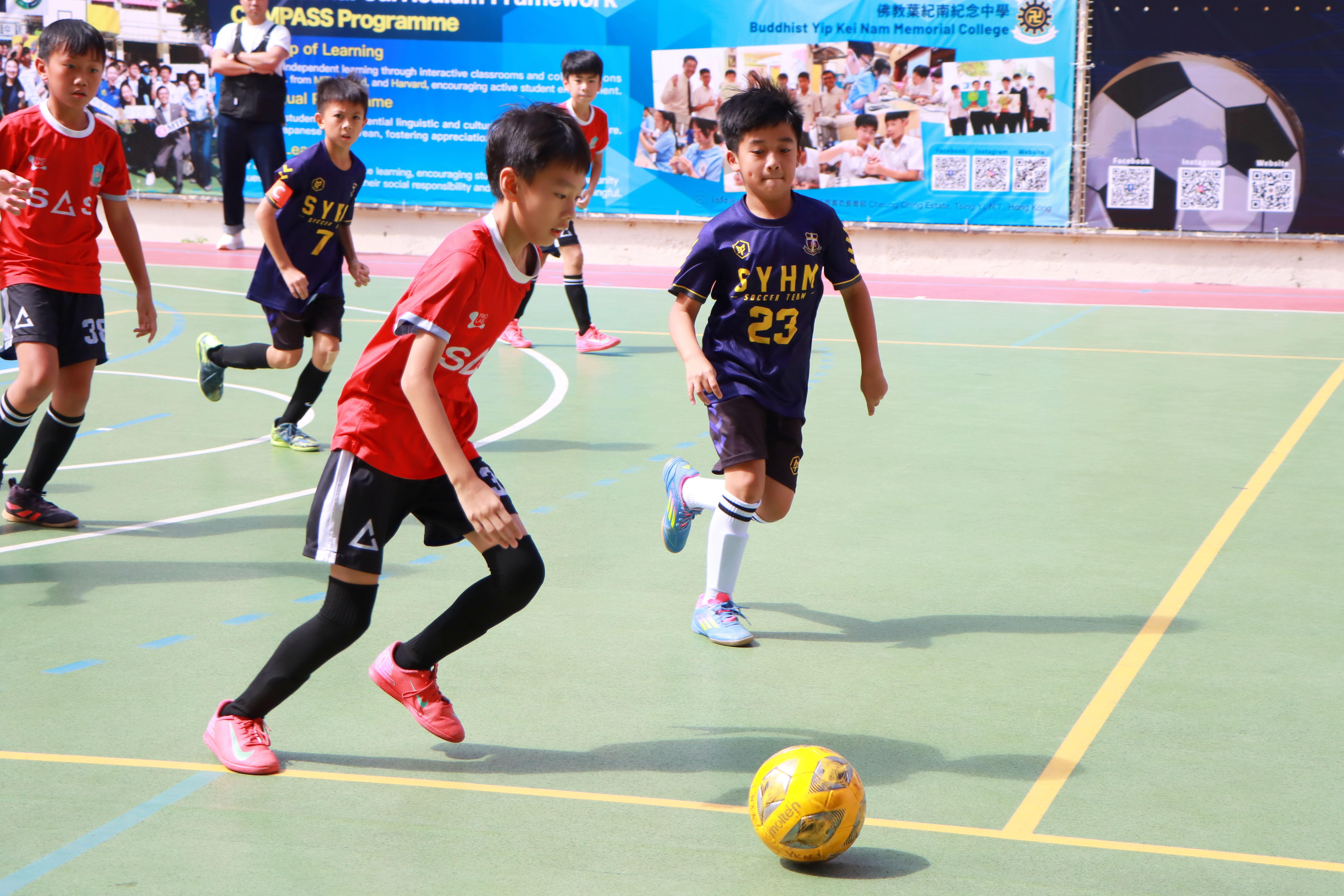 「葉紀南盃」小學五人足球賽於10月25日順利舉行,十二支小學隊伍一早雲集本校,為校園帶來無限的活力。開幕禮上,林校長鼓勵同學在球場上「搏盡無悔」,參賽者亦以汗水與拚勁作出最佳回應。是次賽事得以順利進行,有賴本校學生工作人員的無私付出;而協助攤位活動的同學亦以細緻周到的接待,讓來訪小學生賓至如歸。活動貫徹本校 COMPASS programme 提倡的服務學習理念,體現「服務精神」與「責任感」。