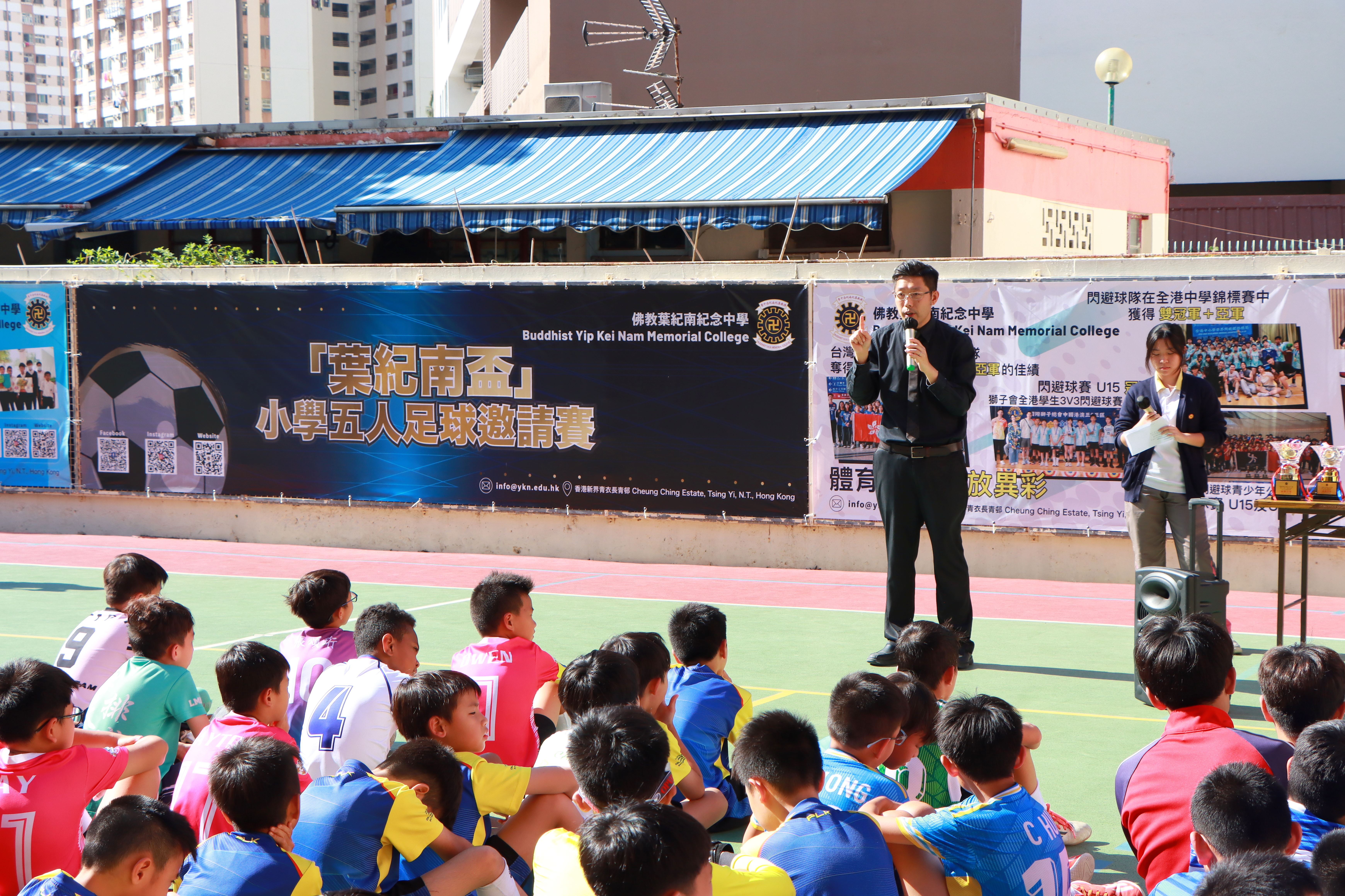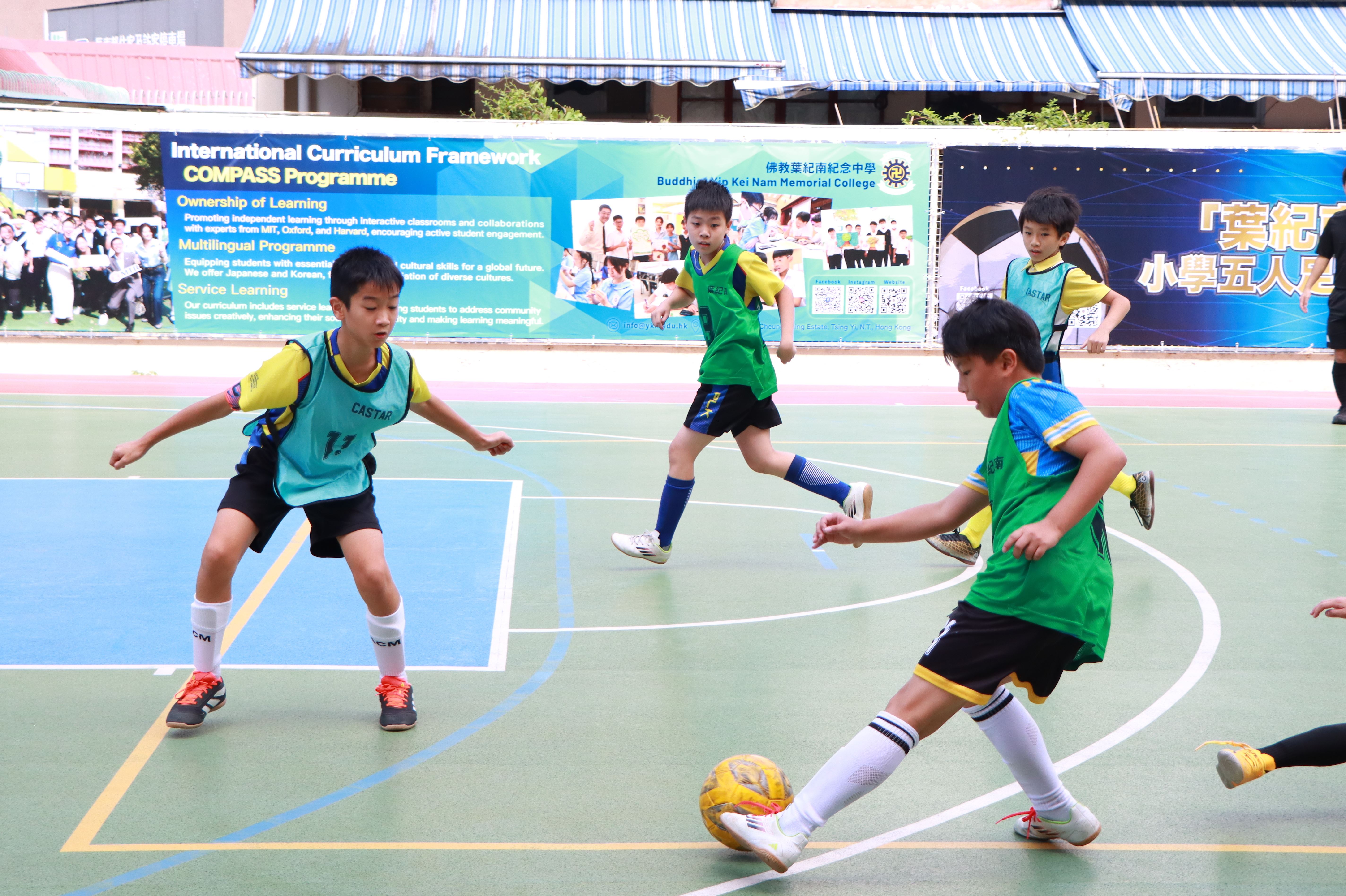 「葉紀南盃」小學五人足球賽於10月25日順利舉行,十二支小學隊伍一早雲集本校,為校園帶來無限的活力。開幕禮上,林校長鼓勵同學在球場上「搏盡無悔」,參賽者亦以汗水與拚勁作出最佳回應。是次賽事得以順利進行,有賴本校學生工作人員的無私付出;而協助攤位活動的同學亦以細緻周到的接待,讓來訪小學生賓至如歸。活動貫徹本校 COMPASS programme 提倡的服務學習理念,體現「服務精神」與「責任感」。
