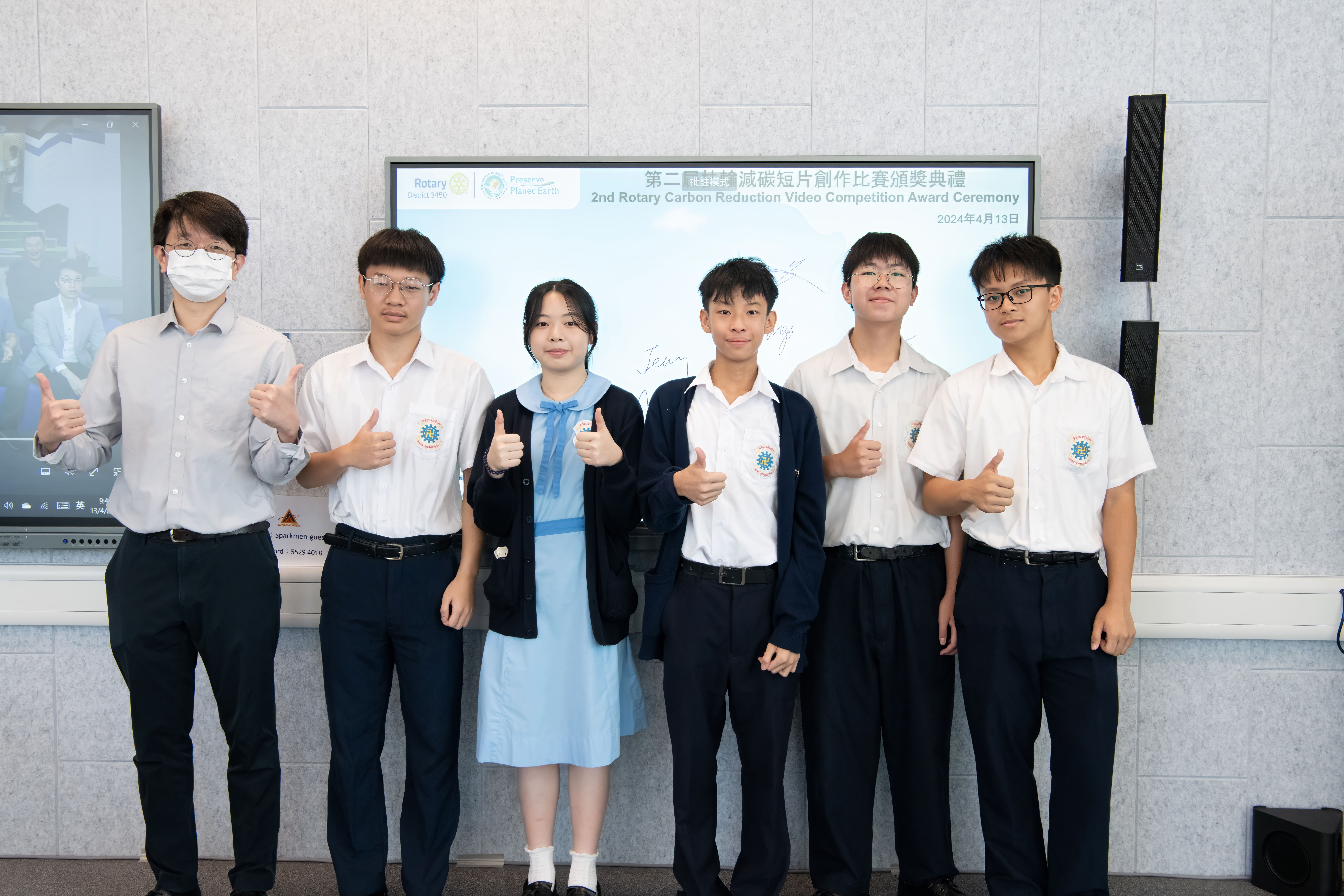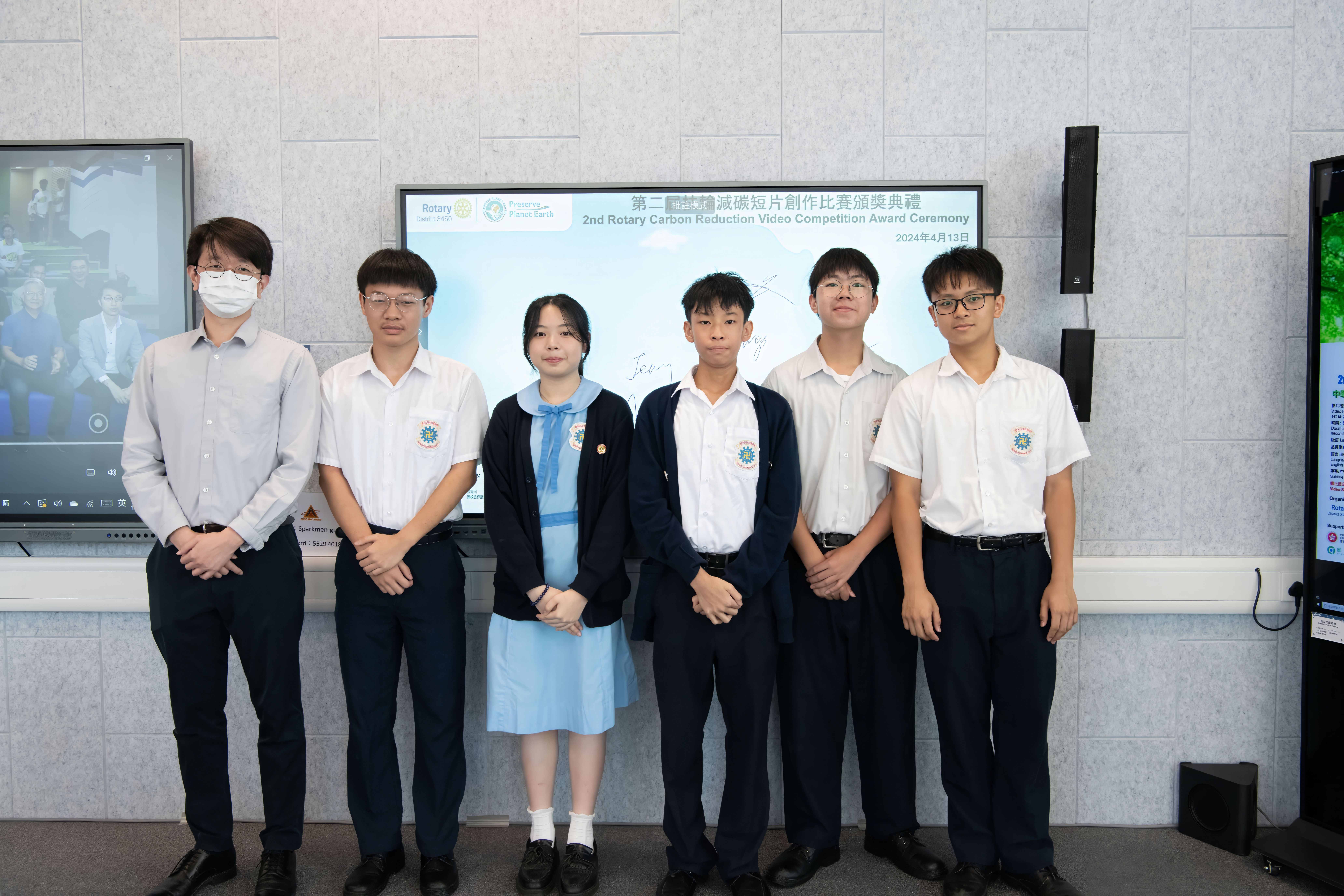由國際扶輪3450地區保育地球委員會舉辦的「第二屆扶輪減碳短片創作比賽」,目的為提高社會的參與度,以及令大眾認識和鼓勵推動環保。是次比賽吸引香港、澳門及蒙古的中學、青年學院及大專學生參加比賽,大會合共收到80份作品,本校校園電視台3A周盈善、3A林曦、3A李家謙、3A李子銘和3A熊萬通 ,於比賽中獲取「優異獎」。